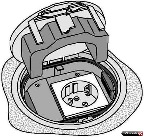 Einbaugehäuse mit Bodenbelag-Schutzrahmen, komplett mit Einbaubecher und 1 Schuko-Steckdose