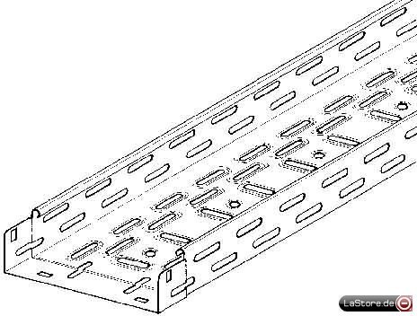 Stoßstellenverbinder angeprägt, mit Rasteinrichtung im Boden. Querlochprägung im Boden, Mittellochung für Gewindestangen M 10. Durchlaufende Verstärkungssicken, glatte Auflagenflächen, stabilisierende gerollte Kanten, versetzt angeordnete Langlöcher im Boden und in den Seitenholmen ermöglichen eine stufenlose Befestigung. Lieferung einschließlich der anteilmäßig erforderlichen Verbindungsschrauben FLM 6x12. Lieferlänge 3 m