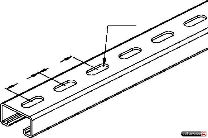 C-Profil mit Schlitzweite 22 mm, Einfachprofil, Rücken gelocht