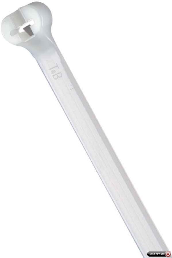 Bandbreite 7 mm, Bandlänge 762 mm, Banddicke 1,6 mm, Werkstoff Kunststoff, Werkstoffgüte sonstige, Oberfläche unbehandelt, Farbe schwarz, UV-beständig, Beschriftungsfläche ohne, Max. Kabelbaumdurchmesser 229 mm, Vibrationsfest, Mindestbruchlast 540 N, Ausführung innenverzahnt