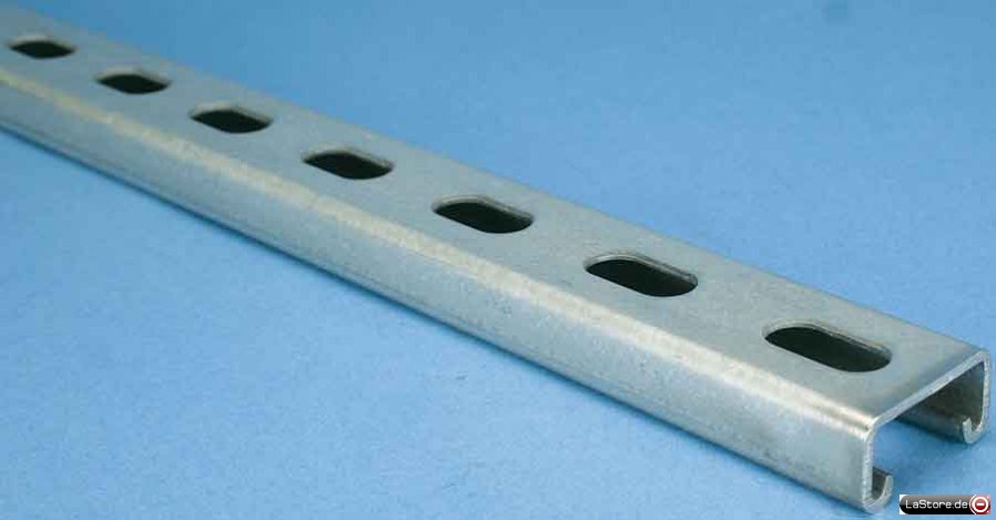 Länge 3000 mm, Breite 41 mm, Höhe 21 mm, Materialstärke 2,5 mm, Profilform C-Profil, Ausführung Einfachprofil, Art der Lochung Rücken gelocht, Lochbreite 14 mm, Werkstoff Stahl, Werkstoffgüte sonstige, Oberfläche galvanisch/elektrolytisch verzinkt