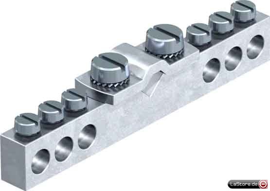 Für Badezimmer. Kontaktleiste aus Messing vernickelt, Schrauben und Klemmbügel aus Stahl galvanisch verzinkt.