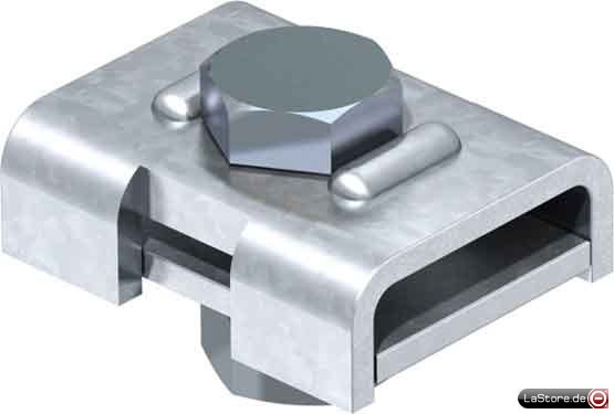 Zum Anschluss von Rundleiter Rd 8-10, mit einer Sechskantschraube M12x40 und einer Sechskantmutter M12 und einem Federring aus rostfreiem Stahl