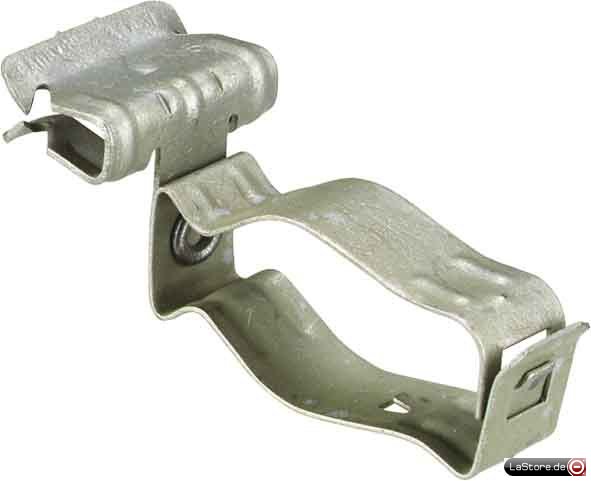 Für Befestigungen von Rohren und Leitungen. Die genietete Rohrschelle wird mit einer Zange geschlossen und kann für horizontale oder vertikale Montage gedreht werden.