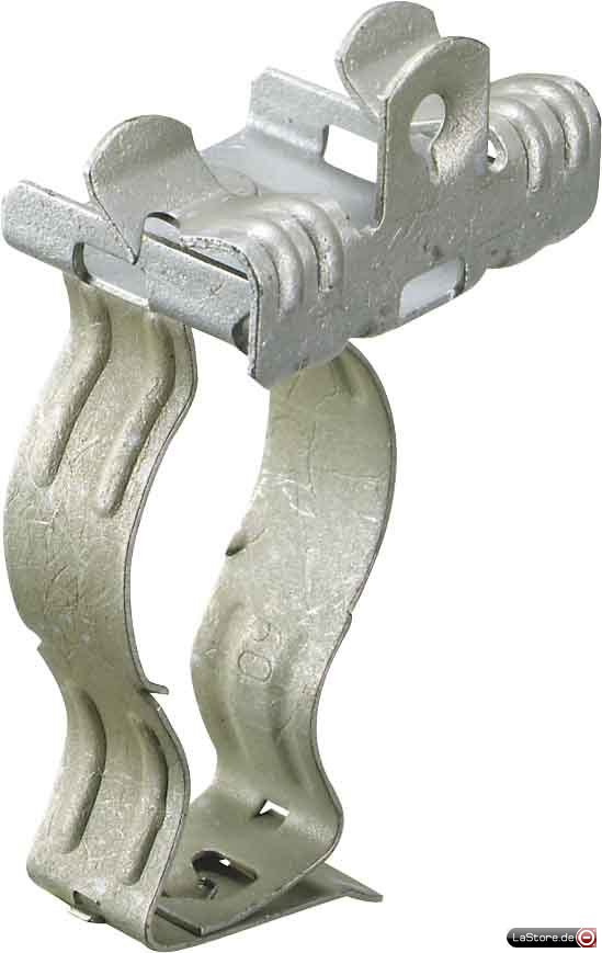 Zur Installation von Kabeln und Rohren mit einer genieteten Rohrschelle. Die Rohrschelle wird mit einer Zange geschlossen, ist drehbar und kann nach den jeweiligen Montageanforderungen ausgerichtet werden.