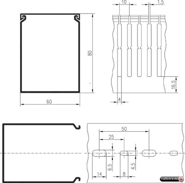Höhe: 80 mmBreite: 60 mmAusführung der Seitenwand: geschlitztBefestigungsart: BodenlochungFarbe: steingrau