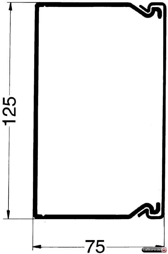Beidseitig verjüngte Seitenstanzung für sichere Verdrahtung, Bodenstanzung nach DIN 43659 (ab Kanalbreite 75 mm zweispurig). Lieferform: Unter- und Oberteil, Lieferlänge: 2 m