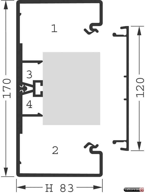 Ausführung Rückwand (Innenseite): durchlaufendes C-Profil