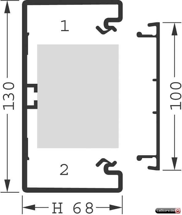 Ausführung Rückwand (Innenseite): durchlaufendes C-Profil