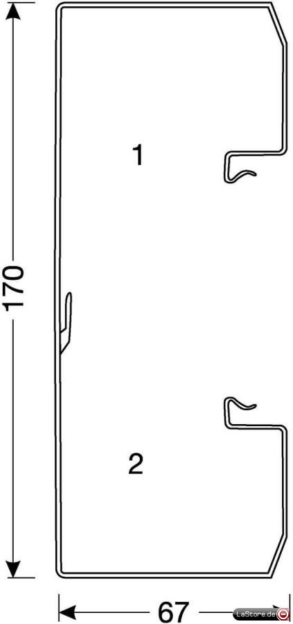 Lieferform: Grundprofil, Grundprofilverbinder, Systemträger ab Grundprofil Höhe 210 mm (3 St/m), Bodenlochung im Abstand von 50 mm, Lieferlänge 2000 mm, Sonderlängen bis maximal 3100 mm auf Anfrage