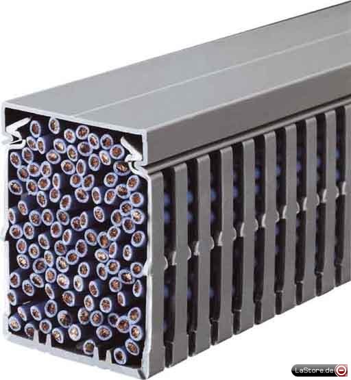 Lieferform Ober- und Unterteil, Bodenlochung nach EN 50085, Material PVC hart, Lieferlänge 2 m, Stege werkzeuglos ausbrechbar.