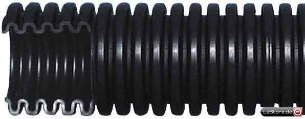 Biegsames Kunststoffrohr aus Polyolefin. Schwarz RAL 9005. Im- oder Unterputz und Hohlwand-Installationen, selbstverlöschend, Polyolefin, schwarz RAL 9005, -15°C bis +90°C leichte Druckfestigkeit, leichte Schlagfestigkeit, VDE 0605 DIN EN 50086-1 DIN EN 50086-2-2 Mind-Druckf. 320 N / 5 cm, Klass.: 2232
