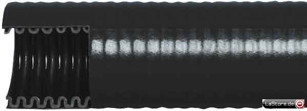 Biegsames Kunststoffrohr aus PVC, schwarz RAL 9005, Geeignet für Installationen im Freien. Selsbstverlöschend, PVC modifiziert schwarz RAL 9005, -25°C bis +60°C schwere Druckfestigkeit, mittlere Schlagfestigkeit, VDE 0605 DIN EN 50086-1 DIN EN 50086-2-2 Mind-Druckf. 1250 N / 5 cm, Klass.: 4341