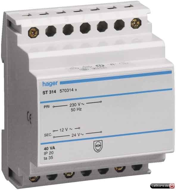 Primärspannung: 230 V Sekundärspannung 1: 12 V Sekundärspannung 2: 24 V Sekundärstromstärke 1: 3,33 A Sekundärstromstärke 2: 1,67 A Art des Trafos: Sicherheitstrafo Breite in Teilungseinheiten: 4
