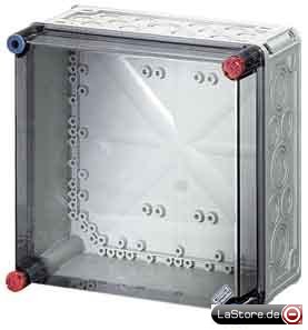 Zur Aufnahme von Geräten über Gerätetragschienen oder Montageplatten, grau nach RAL 7032, Deckelverschlüsse für Werkzeugbetätigung, plombierbar (Tragschienen und Montageplatten zusätzlich bestellen)