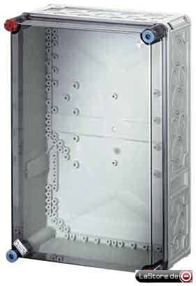 Zur Aufnahme von Geräten über Gerätetragschienen oder Montageplatten, grau nach RAL 7032, Deckelverschlüsse für Werkzeugbetätigung, plombierbar (Tragschienen und Montageplatten zusätzlich bestellen)