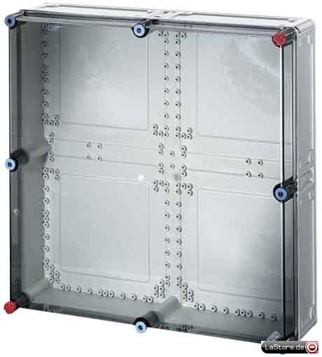 Zur Aufnahme von Geräten über Gerätetragschienen oder Montageplatten, grau nach RAL 7032, Deckelverschlüsse für Werkzeugbetätigung, plombierbar (Tragschienen und Montageplatten zusätzlich bestellen)