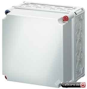 Mit Anbaustutzen zur Aufnahme von Geräten über Gerätetragschienen oder Montageplatten, grau nach RAL 7032, Deckelverschlüsse für Werkzeugbetätigung, plombierbar (Tragschienen und Montageplatten zusätzlich bestellen).