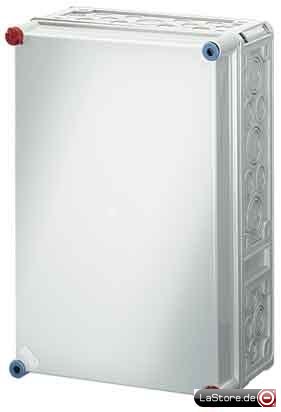 Mit Anbaustutzen zur Aufnahme von Geräten über Gerätetragschienen oder Montageplatten, grau nach RAL 7032, Deckelverschlüsse für Werkzeugbetätigung, plombierbar (Tragschienen und Montageplatten zusätzlich bestellen).