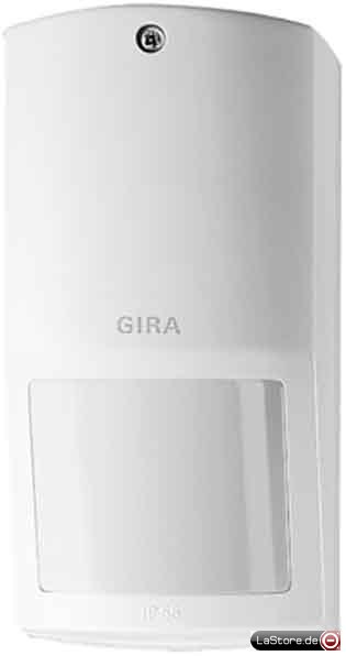 Passiv-Infrarot-Bewegungssensor. Reichweite in drei Stufen einstellbar. Das Erfassungsfeld ist in 5 fächer-förmige Bereiche aufgeteilt.