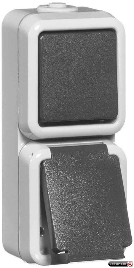 Ausführung des Schalters: WechselschalterAusführung der Steckdose: SCHUKOAnzahl der Steckdosen: 1Montageart: AufputzFarbe: grau