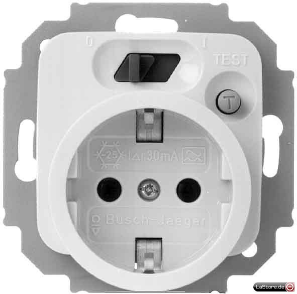 Mit eingebautem Fehlerstrom-Schutzschalter, mit Verbindungsleiter, nachgeschaltete Steckdosen sind mitgeschützt. Bauart nach VDE 0664