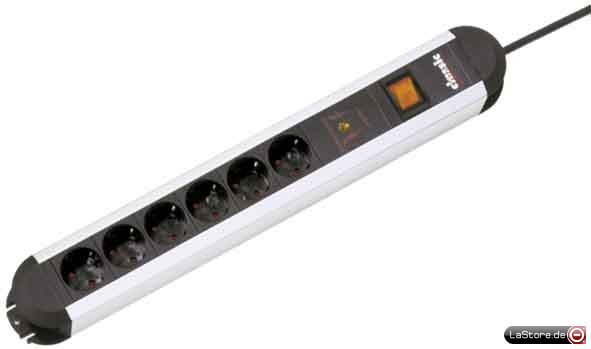6-fach-Aluminium-Steckdosenleiste in Profiqualität mit Überspannungsschutz, Transientenschutz