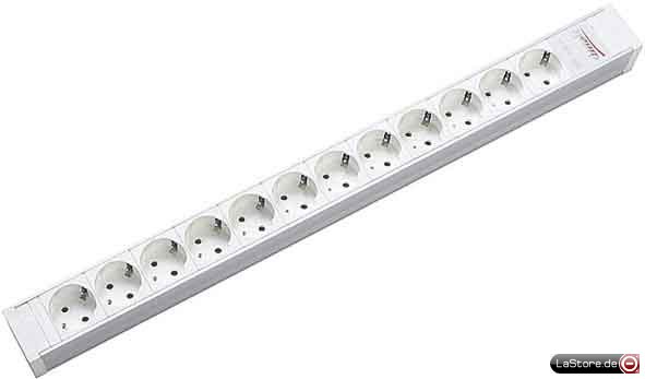 2 m Zuleitung H05VV-F 3G1,5 mm², 16 A/3600 W, stabiler Aluminium-Grundkörper, speziell für den Einbau in Datenschränke, für Vertikalmontage