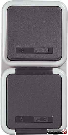 Ausführung des Schalters: WechselschalterAnzahl der Steckdosen: 1Montageart: AufputzFarbe: grau