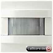 Passiv-Infrarot-Bewegungsmelder für den Innenbereich. Bei Auslösung durch eine Wärmebewegung wird ein Schaltbefehl gesendet. Die Eigenschaften sind parametrierbar. - Einstellbar als Einzelgerät, Hauptstelle, Nebenstelle - Umschaltung der Betriebsart zwischen Beleuchtungs- und Meldebetrieb (Meldebetrieb: Es müssen erst eine bestimmte Anzahl von Bewegungen in einem festzulegenden Zeitintervall erkannt werden, bevor ein Telegramm gesendet wird) - Zusätzliches Schaltobjekt bei Meldebetrieb - Verhalten bei Umschaltung in den Meldebetrieb parametrierbar - Im Beleuchtungsbetrieb sind die Funktionen Schalten, Wertgeber und Lichtszenenabruf einstellbar - Helligkeitsunabhängige Bewegungserfassung einstellbar - Verhalten nach Busspannungswiederkehr einstellbar - Status LED - Gehtest-Funktion zur Überprüfung des Erfassungsbereiches (helligkeitsunabhängig) - Alarmfunktion beim Entfernen des Automatikschalter Aufsatzes - Zurücksetzen des Alarmobjektes bei Wiederaufstecken des Aufsatzes - Telegrammart am Anfang und am Ende der Erfassung einstellbar - Zyklisches Senden - Über eingebautes Potentiometer kann der Helligkeitswert innerhalb der in der ETS festgelegten Grenzen (3-100 Lux) verstellt werden (über ETS sperrbar) - Umschaltbar durch Schiebeschalter (über ETS sperrbar) auf Dauer-Ein, Dauer-Aus, Automatikbetrieb
