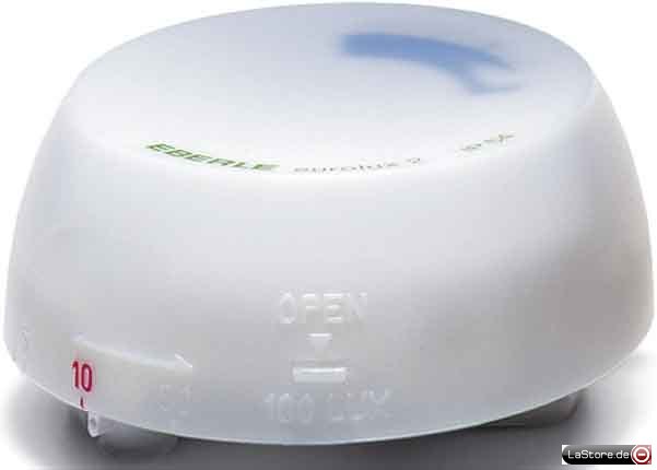 Dämmerungsschalter im modernen Design mit Außeneinstellung und montagefreundlicher Einlochbefestigung, ca. 5...100 Lux, großer Anschlussraum und schraubenlose Klemmen, unverzögerte Schaltzustandsanzeige bei Inbetriebnahme, Schaltverzögerung Ein/Aus ca. 10 ¿ 20 Sekunden, Durchmesser 103 mm, Höhe 50 mm, Schutzart IP 54