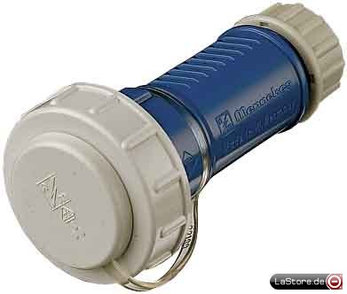Mit Bajonettdeckel am Band, Kontaktbelegung: 2P+E