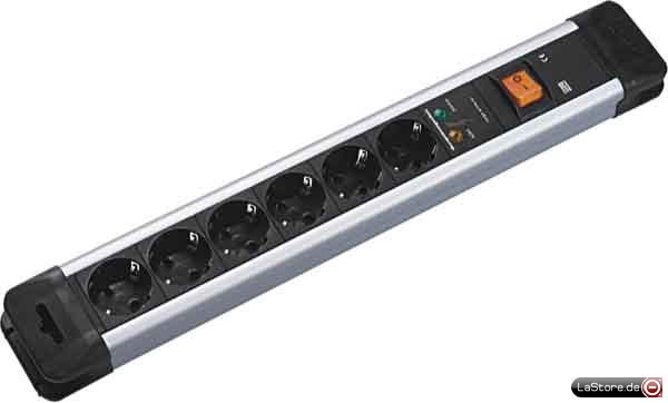 Kunststoffprofil silber, schwarze Endkappen, mit Kinderschutz, mit 2-poligem Wippschalter beleuchtet und Zuleitung: 2 m H05VV-F 3G1,50 mm²