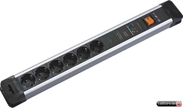 Kunststoffprofil silber, schwarze Endkappen, mit Kinderschutz, mit 2-poligem Wippschalter beleuchtet und Zuleitung: 2 m H05VV-F 3G1,50 mm²