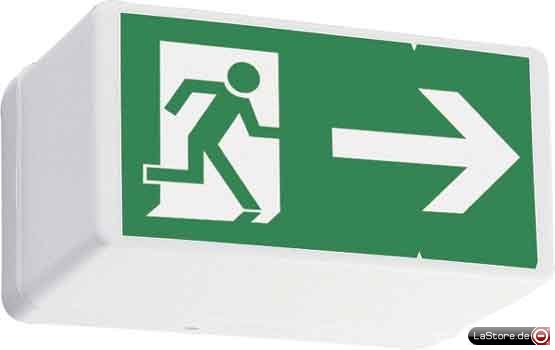 Abdeckung opal, Dauerschaltung (D) und Bereitschaftsschaltung (B) möglich, Funktionsüberwachung standardmäßig, Multifolie mit Rettungszeichen und Leuchtmittel im Lieferumfang enthalten, Schutzklasse II, Erkennungsweite 21 m.