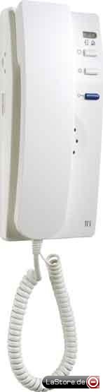 Zum Gegensprechen; blaue Türöffnertaste; Lichttaste; 1 Steuertaste ab Werk: mit Steuerfunktion fest belegt; Auswahl aus 13 Ruftönen; akustische und optische (LED) Rufunterscheidung zwischen Haus-, Wohnungstür und Internruf; Ruftonlautstärke / manuell stufenlos einstellbar; Ruftonabschaltung mit optischer Anzeige; optische Besetztanzeige bei bestehender Sprechverbindung; Mithörsperre und automatische Gesprächsabschaltung; Abmessungen 212 x 94 x 65 mm