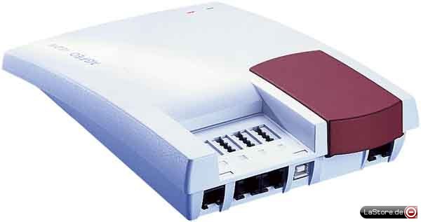 Die anschließbaren analogen Endgeräte (Telefon, Anrufbeantworter, Fax, Modem) können intern telefonieren und bei CLIP-Unterstützung auch die Rufnummer des Anrufers anzeigen. Über die integrierte USB-Schnittstelle kann ein PC direkt mit dem Internet verbunden werden. Inklusive Kommunikationssoftware TK-Suite Basic.