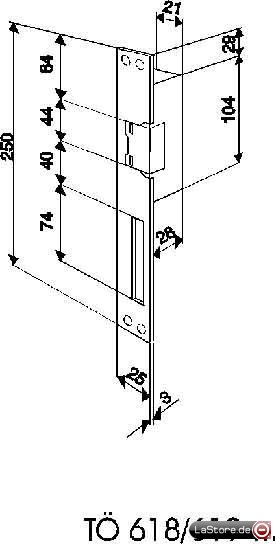 Schutzlackiert, geeignet für schwere Haus- und Zimmertüren, Stromaufnahme bei 12 V AC ca. 0,4 A. Spulenwiderstand ca. 25 Ohm, Schließblech 250 x 25 x 3 mm, Hammerschlag goldfarbig; TÖ 618-0 E: mit mechanischer Entriegelung durch Kipphebel.