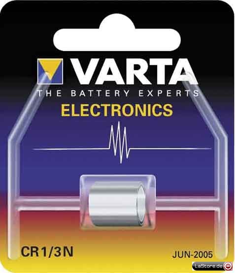 Ausführung: LithiumSpannung: 3 VKapazität: 170 mAhIEC-Bezeichnung: CR 1/3 NHöhe: 10,8 mmDurchmesser: 11,6 mmVerpackung: 1er Blister