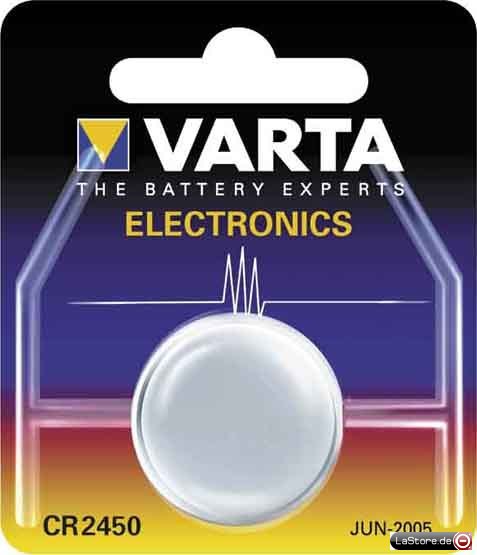 Ausführung: LithiumSpannung: 3 VKapazität: 560 mAhIEC-Bezeichnung: CR 2450Höhe: 5 mmDurchmesser: 24,5 mmVerpackung: 1er Blister