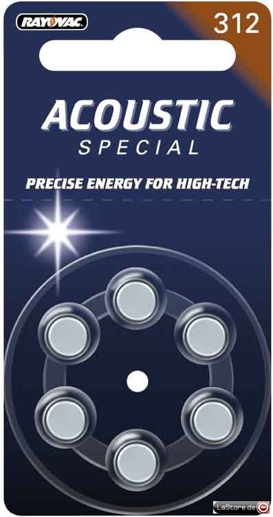 Ausführung: Zink/LuftSpannung: 1,4 VKapazität: 160 mAhIEC-Bezeichnung: PR 41Höhe: 3,45 mmDurchmesser: 7,8 mmVerpackung: 6er Blister