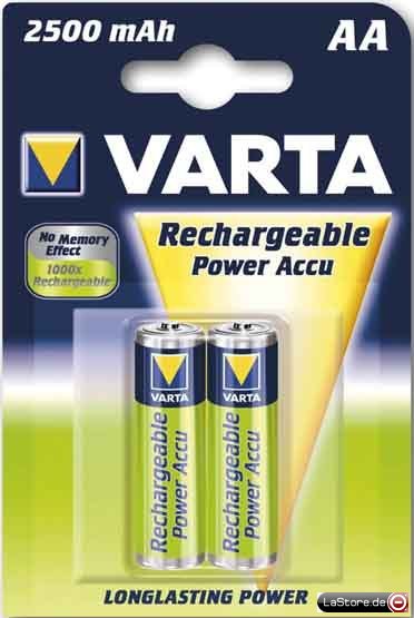 Größenbezeichnung: MignonSonstige Bezeichnung: AANennspannung: 1,2 VKapazität: 2500 mAhAusführung: Nickel-Metall-HydridVerpackung: 2er Blister