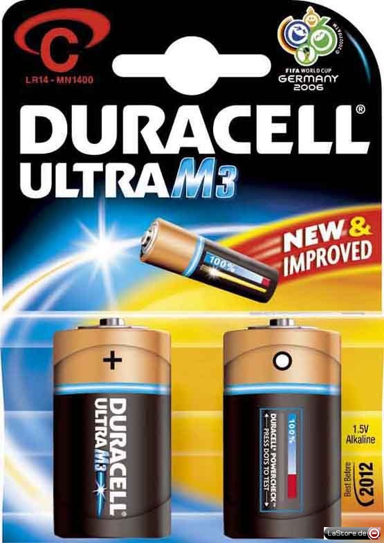 Größenbezeichnung: BabyAusführung: Alkali-ManganSpannung: 1,5 VKapazität: 1400 mAhIEC-Bezeichnung: LR 14Verpackung: 2er Blister