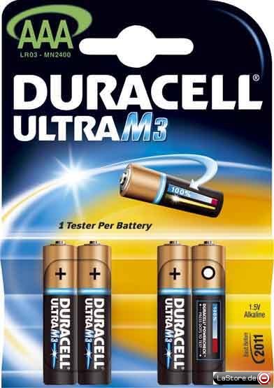 Größenbezeichnung: MicroAusführung: Alkali-ManganSpannung: 1,5 VKapazität: 2400 mAhIEC-Bezeichnung: LR 03Verpackung: 4er Blister
