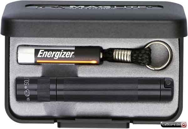 Durch O-Ringe spritzwassergeschützt. Fokussierbar von Punkt- bis Flutlicht. Leuchtdauer: 7,5 Std.