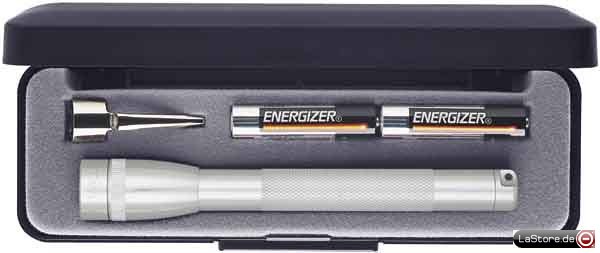 Durch O-Ringe spritzwassergeschützt. Fokussierbar von Punkt- bis Flutlicht. Leuchtdauer: 7 Std.