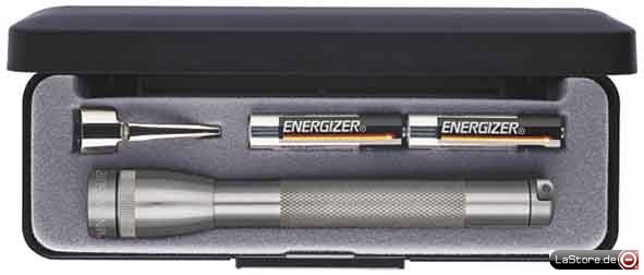 Durch O-Ringe spritzwassergeschützt. Fokussierbar von Punkt- bis Flutlicht. Leuchtdauer: 7 Std.
