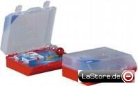 H7-Autolampenbox für alle 12V-Fahrzeuge mit Halogen H7 Scheinwerfer. Bestückt mit 6 Lampen für Halogen-Hauptscheinwerfer, Brems-Schlusslicht, Blinklicht/orange, Brems- und Rücklicht, Schluss- und Kennzeichenlicht und Standlicht sowie mit drei Sicherungen à 15, 20 und 30 A