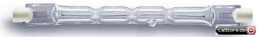 2-seitig gesockelt, Betrieb an Netzspannung ohne Trafo, für flächige Anstrahlung in der Innen- und Außenbeleuchtung, dimmbar.