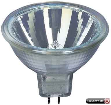 Mit Kaltlicht-Reflektor, reduzierte Wärmebelastung im Lichtbündel um 66%, mit UV-Stop-Technologie, Lebensdauer ca. 2000 h.